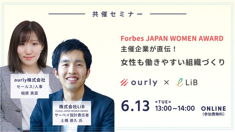 株式会社LiB様は、女性リーダー、プロフェッショナルを続々と輩出している企業と、自ら道を切り拓き自分らしく働く女性を讃える日本最大規模のアワード『Forbes JAPAN WOMEN AWARD』主催企業で、企業における女性の活躍に関して多くの知見を持っています。