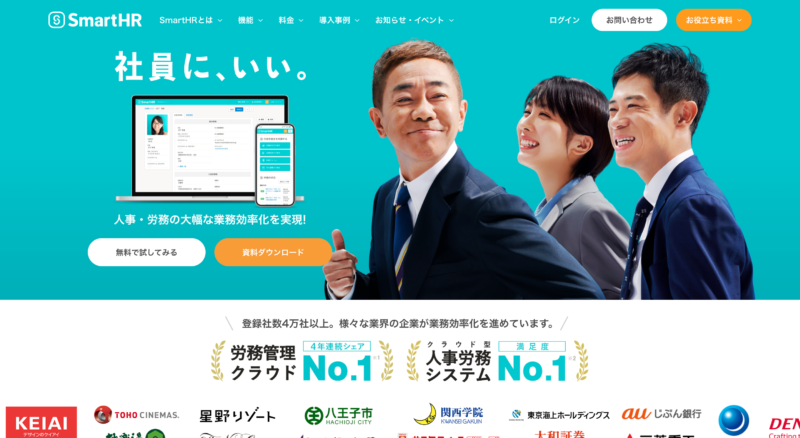 SmartHRは、労務管理クラウドとして5年連続シェアNo.1を誇るクラウド型ソフトウェアです。