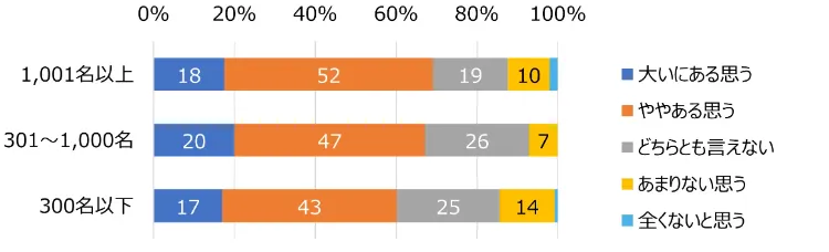 【図表1】企業規模別 自社の社内コミュニケーションに関する課題の認識