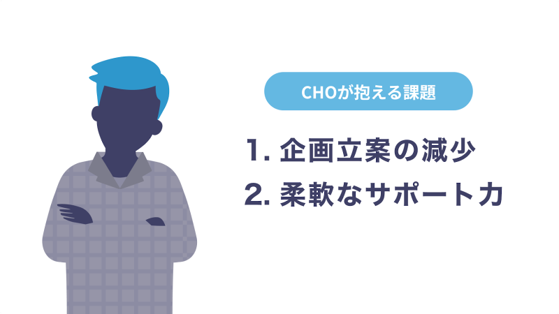 CHOには、社内でみんなが心地良く過ごし、スムーズなコミュニケーションができるように環境を整え、みんなのペースにあわせてチーム管理をしていくことが必要とされるのです。