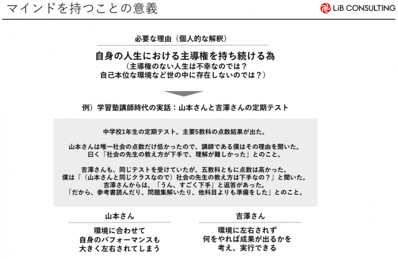 マインドを持つことの意義は「自分の人生における主導権を持ち続けるため」だと思っています。