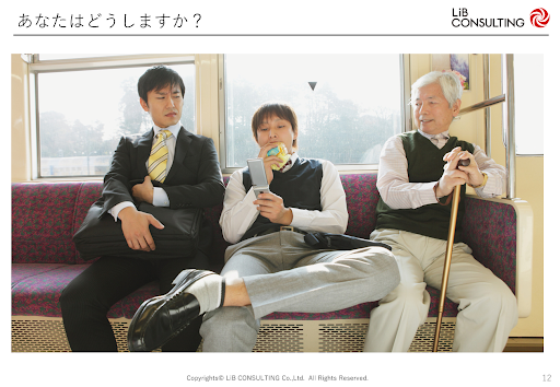この状況に対して、まず、”注意をする”というのと”素通りをする”という分岐があります。そこには葛藤がある。自分の子供の世代と同じだから注意をするとか、あるいは、仲間だったら言う、知らない人だったら言わないという分岐もあると思います。先ほどの左側の考えのように、ここで注意しても究極大きなシステムは変わらないだろうという考えもあるだろうし、やっぱりここは言わなくてはならないという考えもあると思います。この見た、見てしまった状況に対して、どのラインでいくのかというのが提案マインドだと思うんですね。