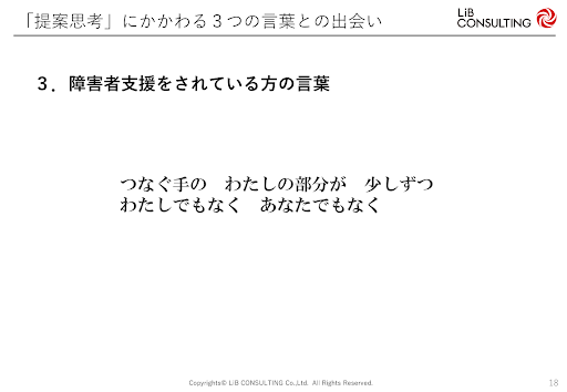 最後に提案思考にかかわる、3つの言葉との出会いについてお話をします。