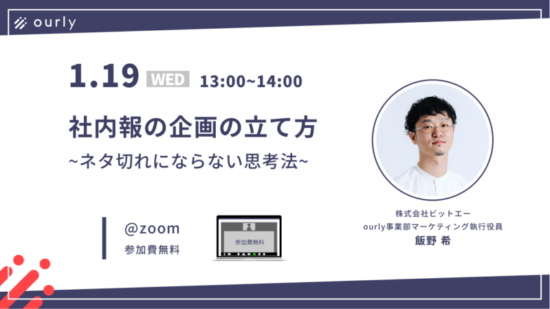 そこで、web社内報サービス「ourly」を運営する株式会社ビットエーでは、これまで様々な企業様の社内報制作に携わっている経験を元に、社内報の企画の立て方について、ネタ切れにならない思考法をお伝えいたします。