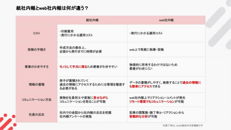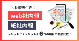 web社内報と紙社内報はどちらがいいのか?メリットとデメリット比較 社内報担当者の中には、web社内報か紙社内報どちらがいいの?と悩んでいる人も多いのではないでしょうか? また、使い分けに悩んでいる方もいらっしゃるでしょう。 そん...