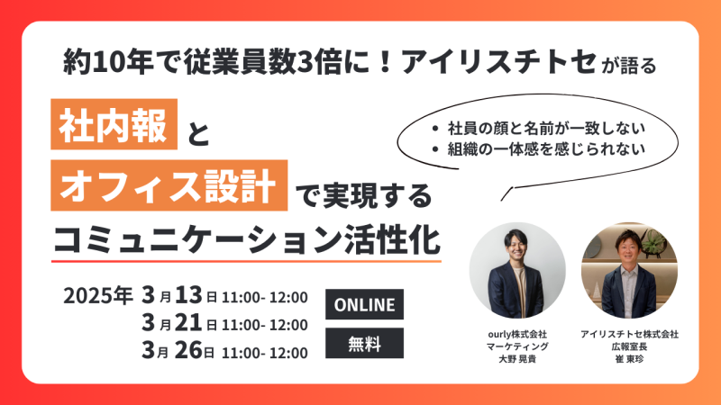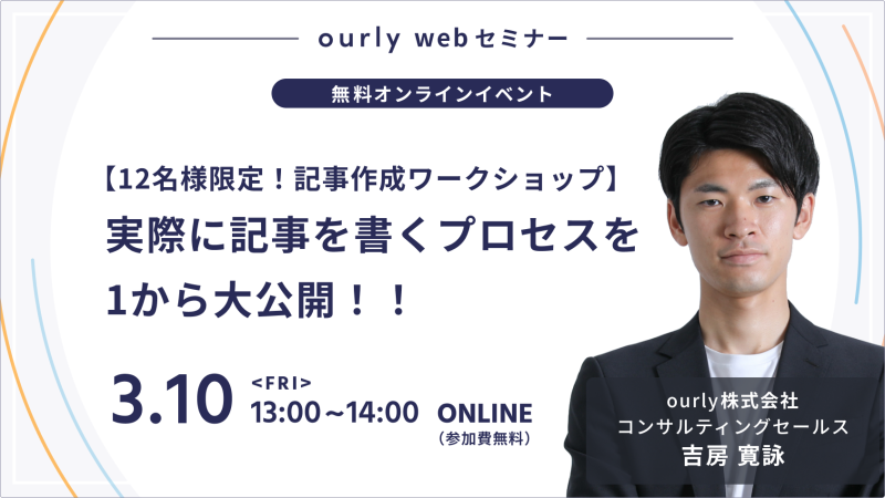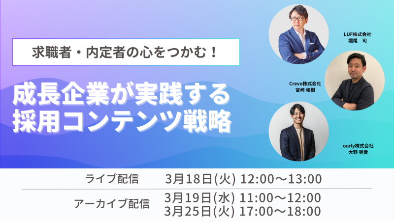 3/18(火) 12:00〜13:003/19(水) 11:00〜12:003/25(火) 17:00〜18:00形式:WEBセミナー(一部アーカイブ)