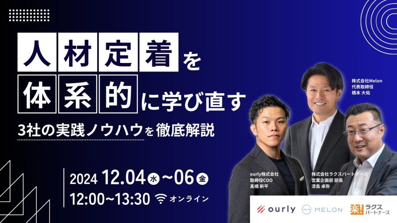 12/04(水) 12:00〜13:3012/05(木) 12:00〜13:3012/06(金) 12:00〜13:30形式:WEBセミナー(一部アーカイブ)
