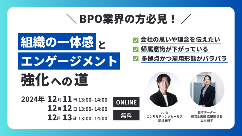 2024/09/26(木) 13:00-14:002024/09/27(金) 13:00-14:002024/09/30(月) 13:00-14:00形式:WEBセミナー
