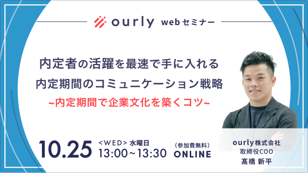 そこで本セミナーでは、内定者が入社後すぐに活躍できる状態を作るための 内定期間におけるコミュニケーション戦略について、具体的な方法も含めて30分でご紹介します。