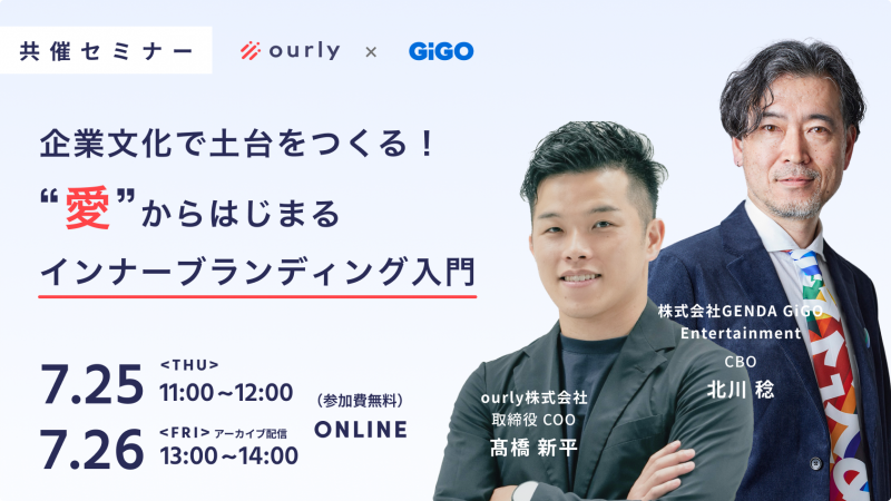 本ウェビナーでは、株式会社GENDA GiGO Entertainment CBO 兼 ブランド戦略室室長の北川様にご登壇いただき、企業文化の浸透を通じて社員の行動を習慣化させるために必要なインナーブランディング戦略、「愛」と「知る」の重要性について深掘りします。